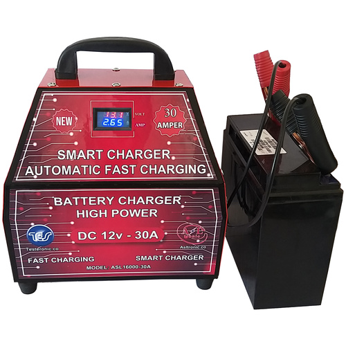 ارژر سریع و اتوماتیک انواع باتری های خودرویی، موتوری و یو پی اس. این شارژر با استفاده از آخرین تکنولوژی سوئیچینگ روز دنیا جریان شارژ باتری را متناسب با ظرفیت و میزان شارژ اولیه ی باتری مشخص می کند. جریان شارژ رفته رفته با توجه وضعیت باتری کاهش داده شده و سرانجام پس از شارژ کامل جریان شارژ به محدوده صفر خواهد شد. این شارژر دارای نمایشگر LCD ولتاژ و جریان باتری در حال شارژ بوده و لحظه به لحظه مقادیر ولتاژ باتری را را به صورت نموداری ثبت می کند. سر انجام با فول شارژ شدن باتری ولتاژ به حداکثر یعنی حدود 14.7 تا 14.9 می رسد. و جریان شارژ به حداقل یا صفر می رسد. این شارژر بالاترین محافظت را برای شارژ مناسب و جلوگیری از آسیب به باتری دارد. برای شروع شارژ باتری کافیست برق دستگاه وصل شده و کلید شارژ روشن شود. با اتصال گیره های دستگاه به دو سر باتری وضعیت شارژ باتری برروی LCD دستگاه به صورت آمپر و ولتاژ مشخص شده است. در ابتدا نمایشگر آمپر روی دستگاه مقداری را نمایش می دهد که نشان دهنده خالی بودن باتری و جریان کشی آن است. با افزایش شارژ مقدار ولتاژ از مقدار اولیه نمایش داده شده بیشتر می شود اما مقدار جریان نمایش داده شده اولیه کاهش می یابد تا به صفر برسد.