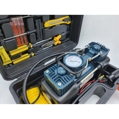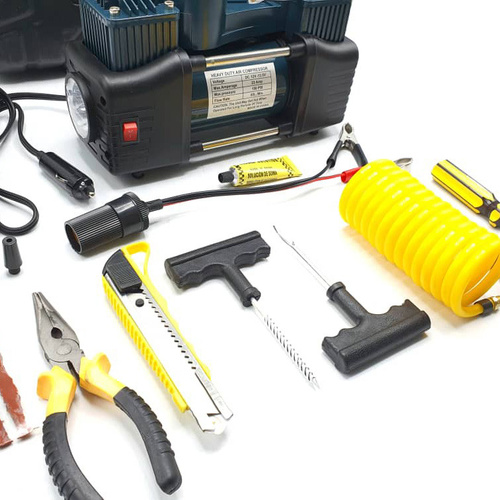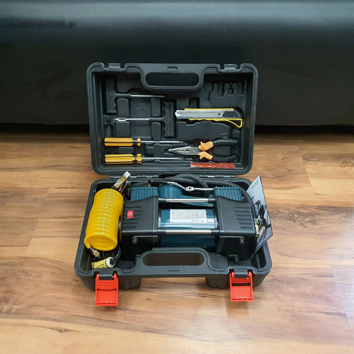 کمپرسور هوا باس مدل فندکی 2 سیلندر خودرو کد 12-V مجموعه 14 عددی